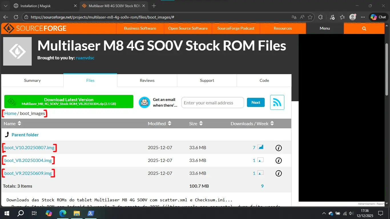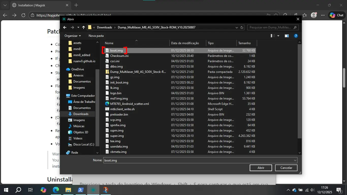 2. Tenha ou faça o download do arquivo de imagem do boot "boot.img". Eu tenho ele no meu repositório no SourceForge: https://sourceforge.net/projects/multilaser-m8-4g-so0v-rom/files/
