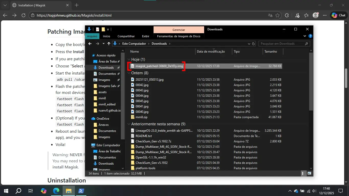 11. Para instalar o Magisk na partição boot, digite o comando fastboot flash boot /caminho/para/magisk_patched_[caracteres_aleatorios].img