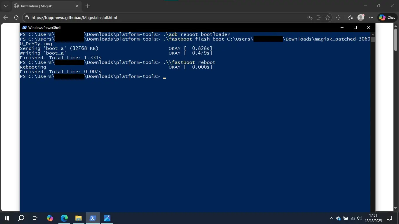 PS C:\Users\voce\Download\platform-tools> .\fastboot flash boot C:\Users\voce\Download\magisk_patched-30600_DeYDy.img